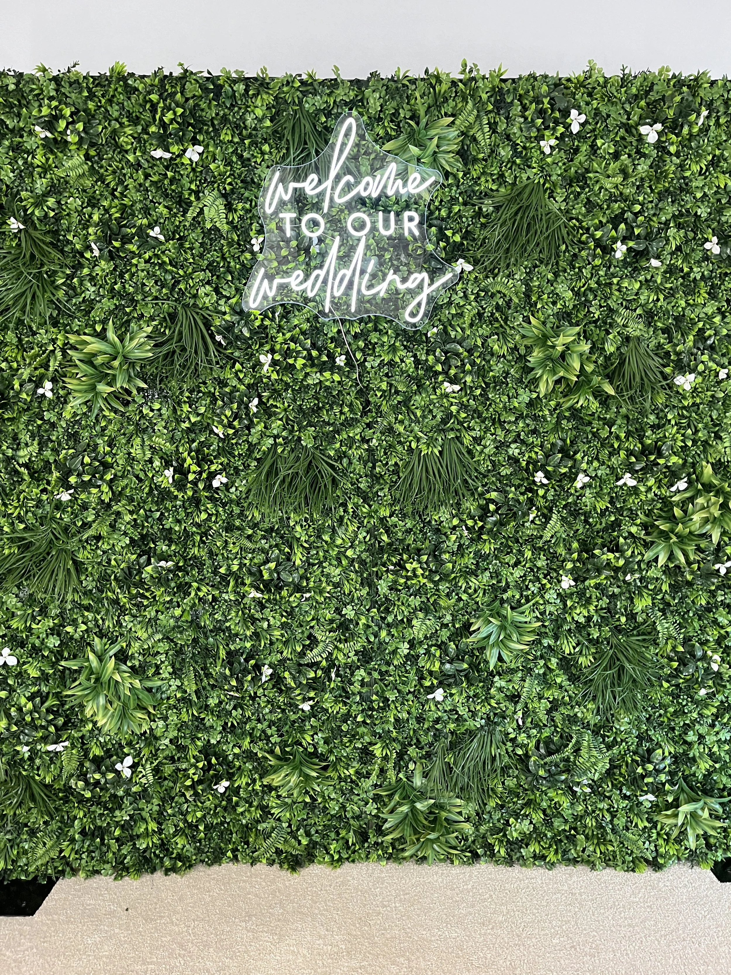 Our 8’ Flower Walls are a perfect backdrop for guests to take photos and share. Choose between our Tropical Green and White Rose.